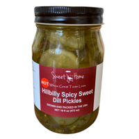 Our Spicy Hillbilly Pickles are a complex flavor experience. A sweet and salty pickle base, brightened by dill, and punctuated by the sharp, lingering heat of jalapeños. The combination creates a dynamic blend of sweet, salty, sour, and spicy.