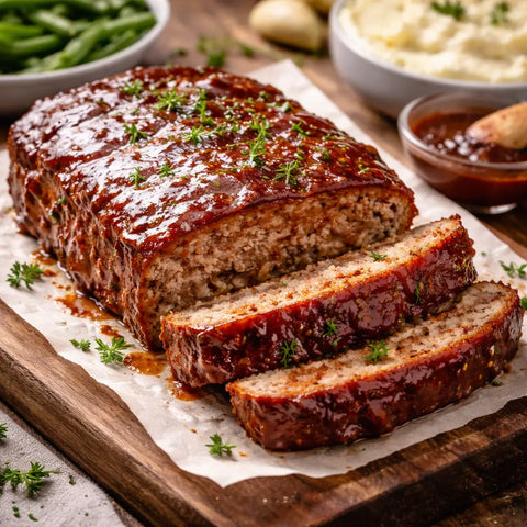 A comforting classic meatloaf finished with a bold, slightly sweet Moonshine BBQ glaze—perfect for family dinners or cozy weeknights.