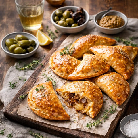 Flaky pastry hand pies filled with fig preserves, caramelized onions, and melty cheese—sweet, savory, and perfect for sharing.