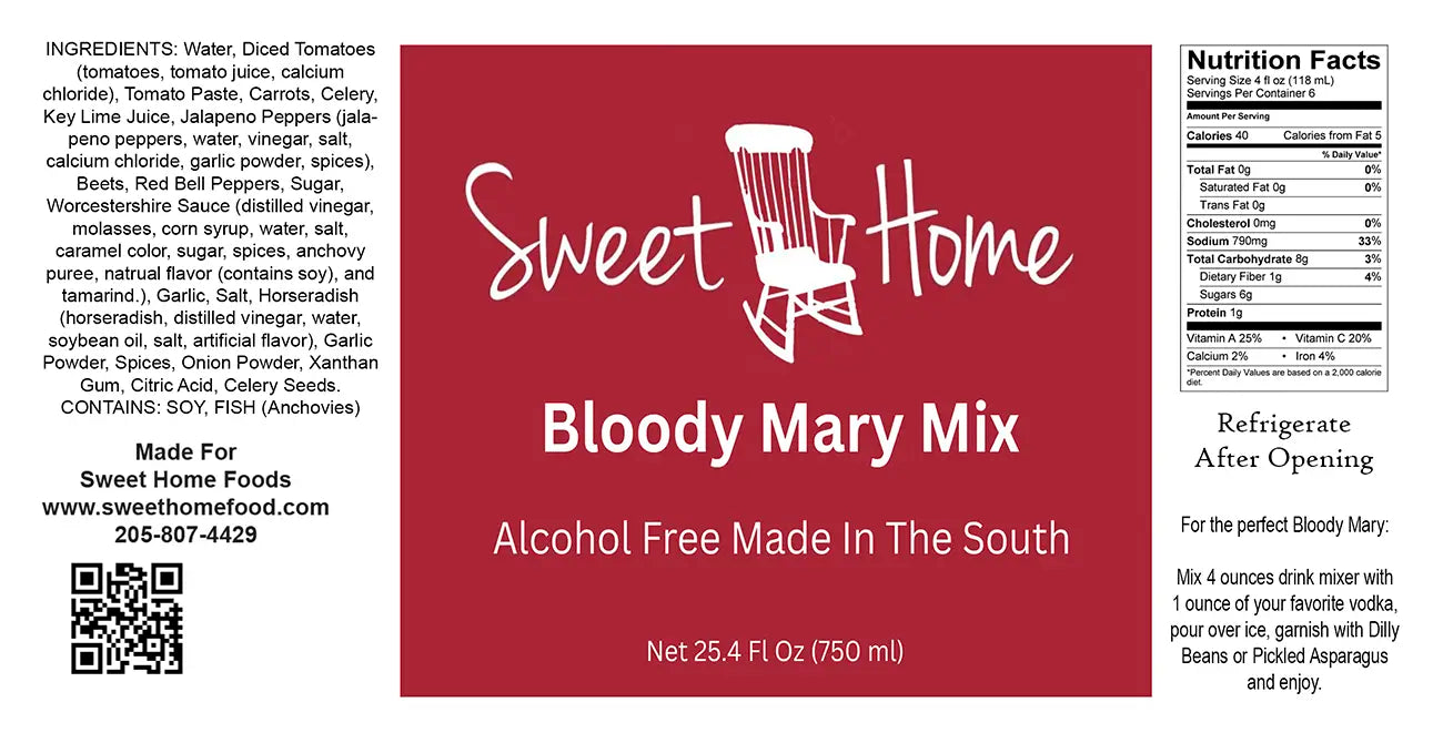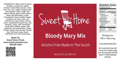 Elevate your brunch game with our irresistible Bloody Mary mix. Bursting with a harmonious blend of tomato juice, Worcestershire sauce, hot sauces, and zesty spices, each sip is a symphony of flavor. Treat yourself to the ultimate brunch indulgence with Sweet Home Foods' Bloody Mary mix.