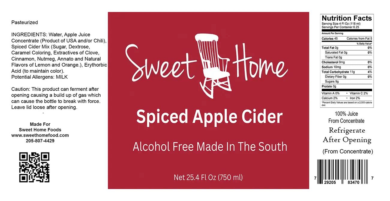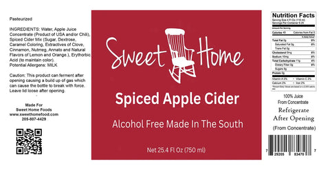 Ingredients: Apple Juice, Cinnamon, Spices, Water, Sugar, Citric Acid, Potassium Sorbate, Erythorbic Acid Size: 25.4 oz.