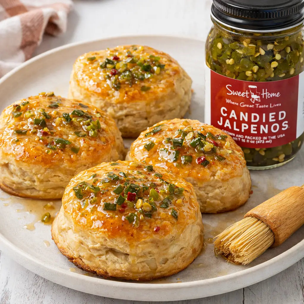 Bring bold flavor to every bite with our Sweet Home Pickled Jalapeño Peppers — also called Cowboy Candy. These thick, crunchy jalapeños are slow-cooked in a sweet and tangy brine that perfectly balances heat and flavor — delivering a vibrant pop of spice with every slice. Whether you add them to tacos, nachos, sandwiches, or cheese boards, Cowboy Candy brings sweet Southern heat that’s addictive without being overpowering.