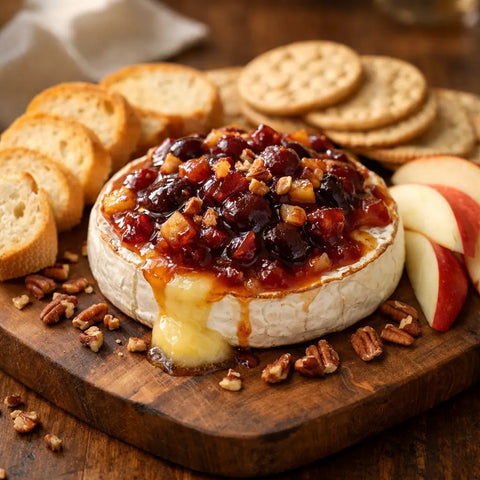 Cherry Bourbon Apple Butter Baked Brie is an easy yet elegant dish that feels right at home on a holiday table, charcuterie board, or cozy night in. Sweet Home Cherry Bourbon Apple Butter melts beautifully over baked Brie, while toasted pecans add crunch and warmth for a crowd-pleasing Southern-inspired bite.