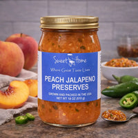Savor the perfect blend of sweet and spicy with Sweet Home Peach Jalapeno Preserves. Made with ripe peaches and zesty jalapenos, this unique preserve offers a delightful kick to your taste buds. Enjoy it as a spread on toast or use it as a flavorful addition to your favorite dishes.